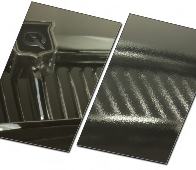 表面紋理可以減弱表面成像的質量,而不影響光澤度值。上面的2個面板用傳統的光澤儀測量得到的是同樣的數據。